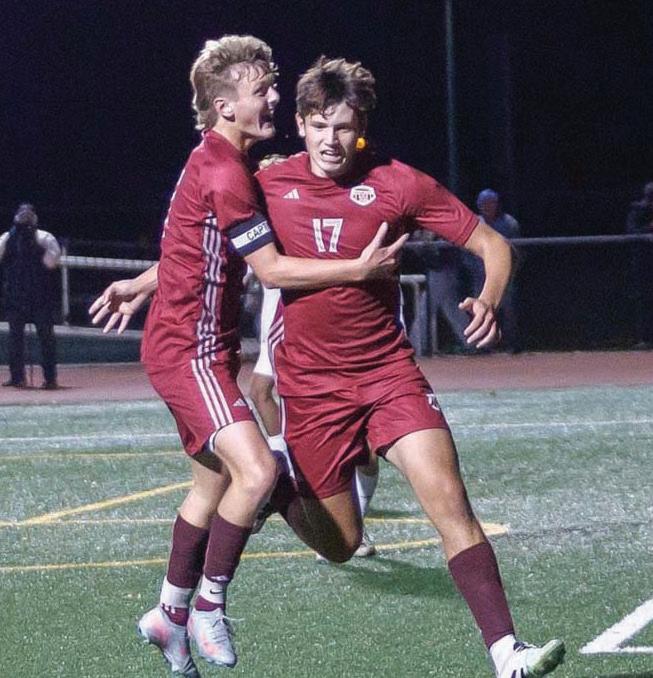 Cutter’s words were quickly translated to the field as the team scored in under two minutes gone by in the half. Controlling the ball off of the tap off, GC got the ball into the box and with bodies crashing, Justin Woodbine was able to push the loose ball past an out of position keeper for the opening goal of the game. Garden City celebrated but kept their game faces on as they inched closer to their ultimate goal.