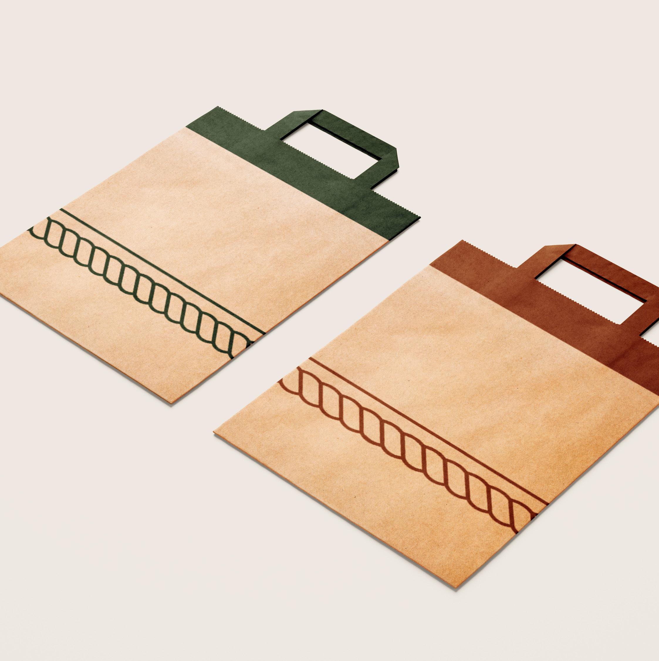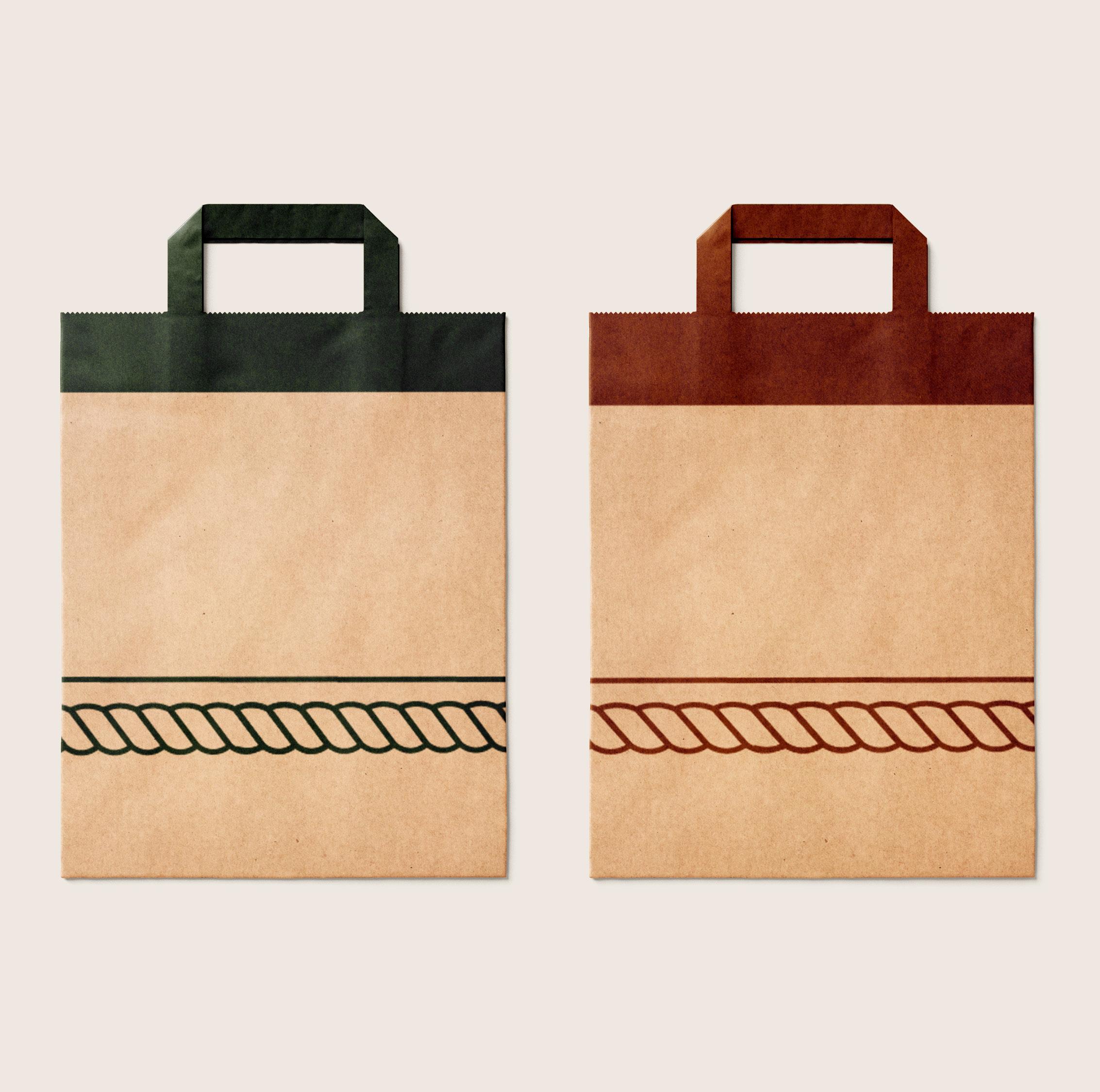 As cores escolhidas para a marca foram hm castanho alaranjado e um verde escuro, para dar um “ar“ de rústico, de um artesanato feito a mão naturalmente. São cores mais fortes para trazer mais vida a marca.