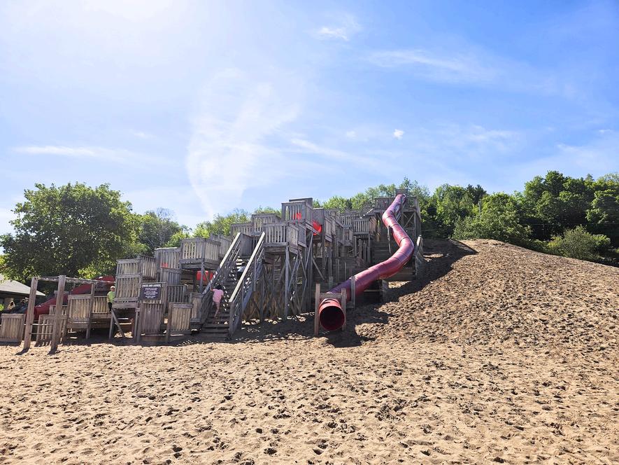 On your way to or from Michigan’s highest point, make a stop at the Chutes and Ladders Playground along the Houghton Riverfront.