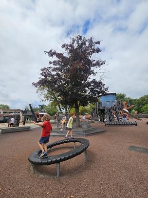 Make time for Palmer Park, home to multiple creative playgrounds including a ninja dome for big kids, a hot air balloon play zone for littles, and a kid-sized safety town