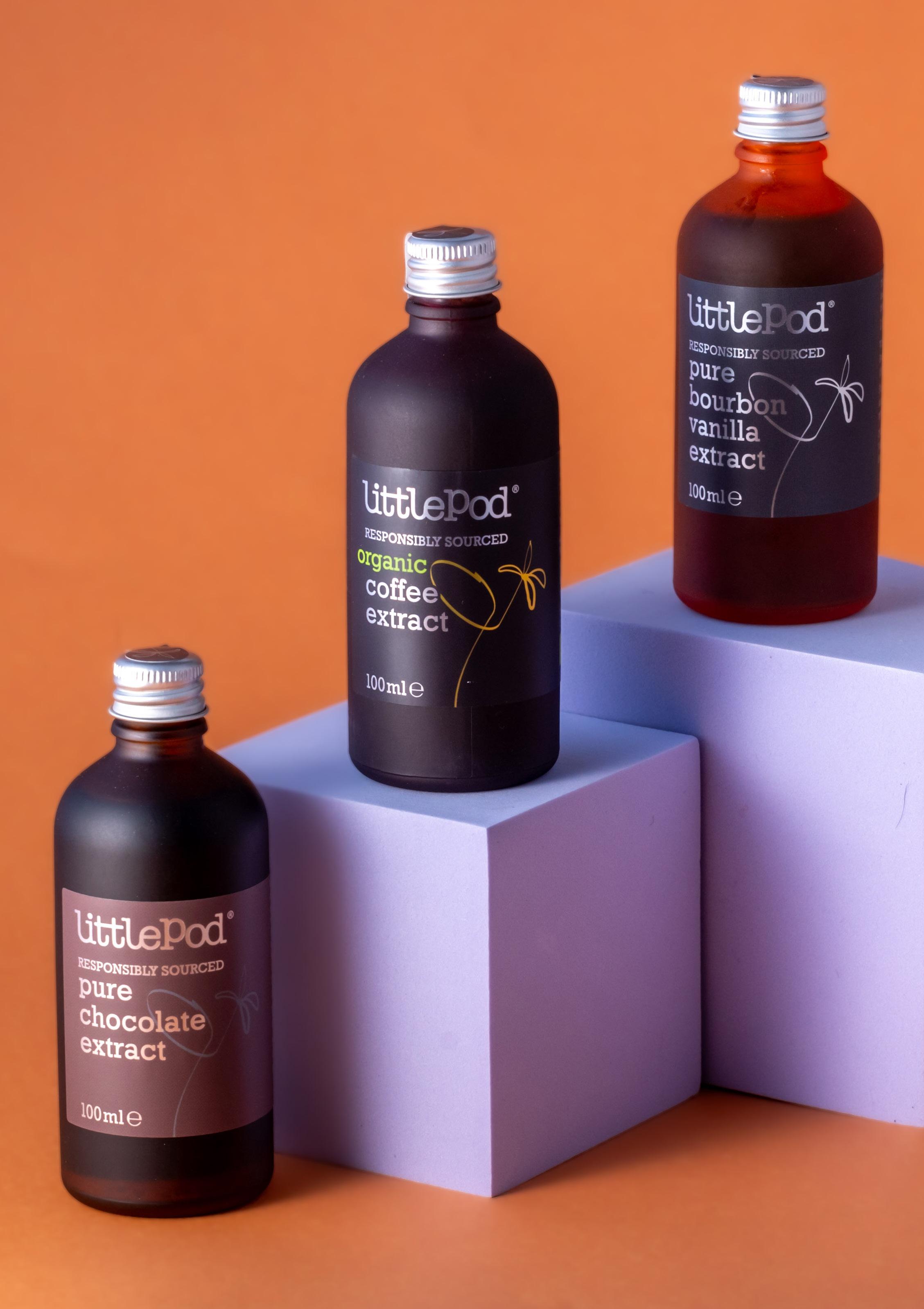 LittlePod’s responsibly-sourced product range includes our innovative easy-to-use natural vanilla paste and organic vanilla pods, as well as our extracts of vanilla, coffee and chocolate. These ingredients not only support each other in the rainforest but are also perfect flavour partners in the kitchen.