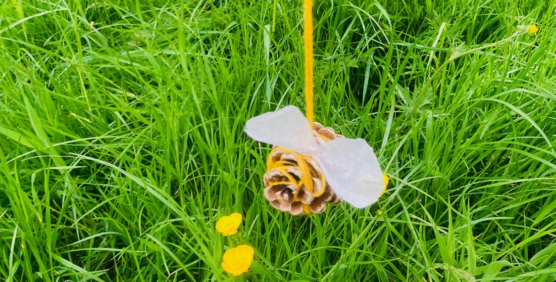 4. Finally, tie your bee on a string to a stick and off you go collecting and spreading pollen between flowers.