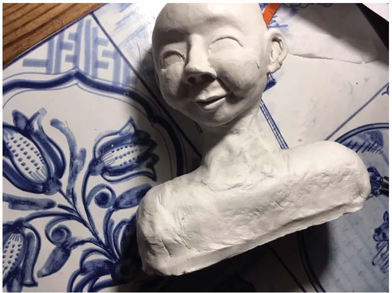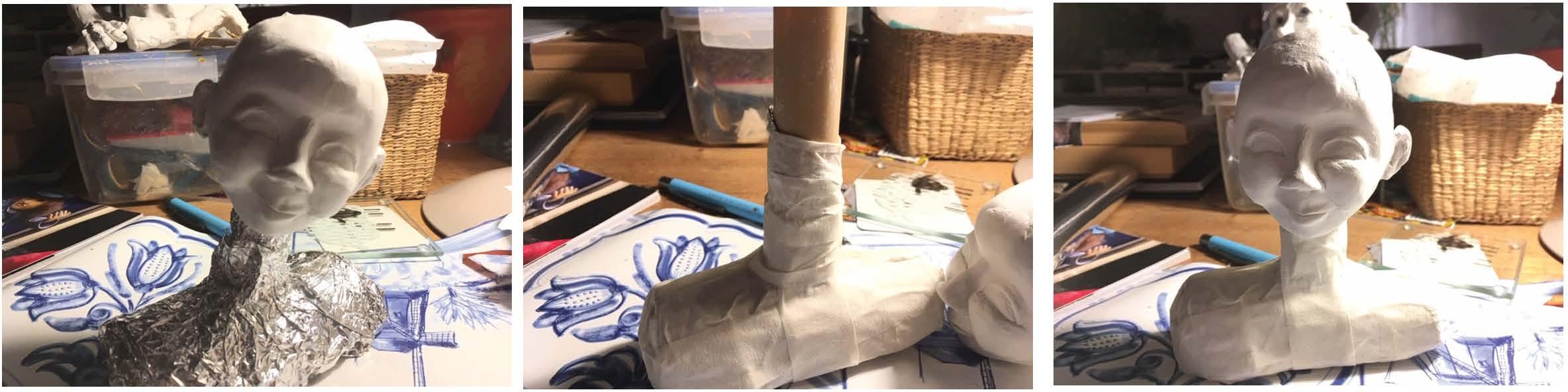 Also, for example to smoothen the base of the head you made in the first session, it is great to slightly wet your hands and smoothen the clay.