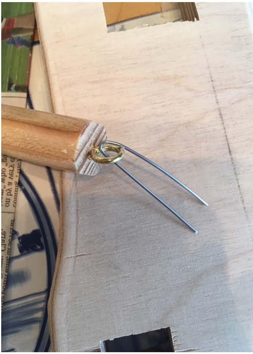 To attach the wire in the head for painting, put the neck dowel into the head to determine where the hole for the wire must go.
