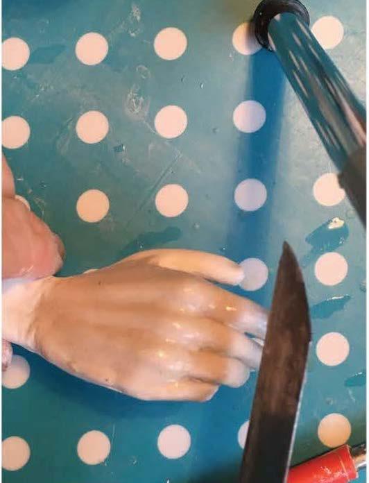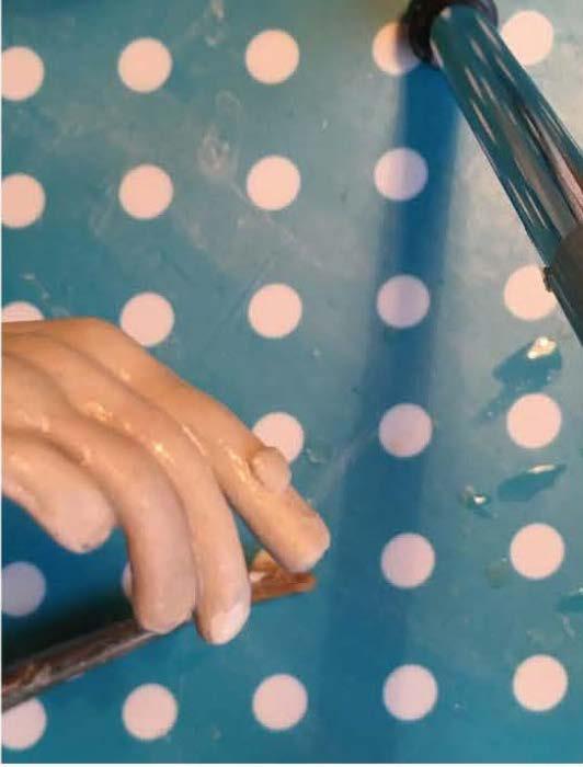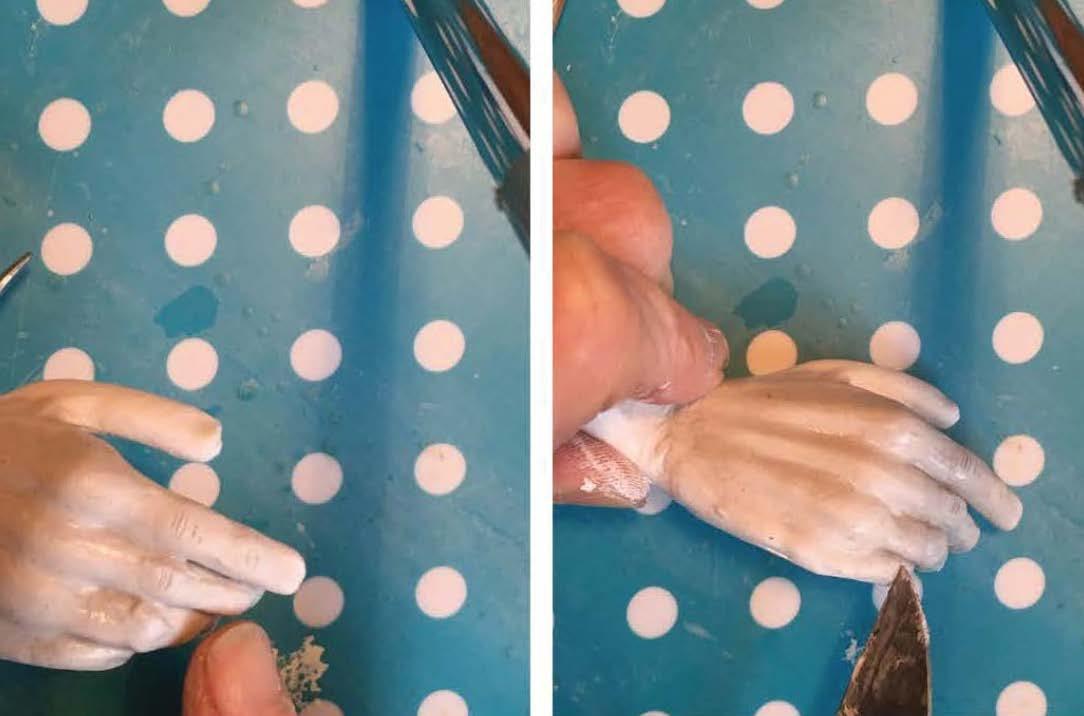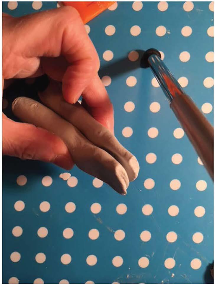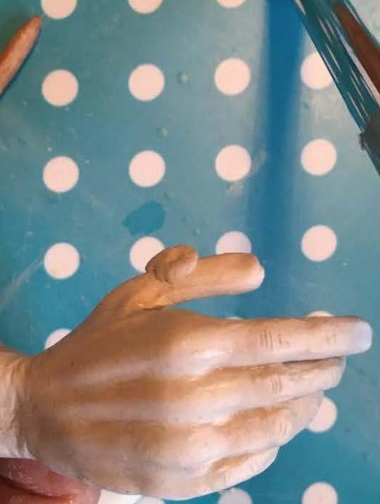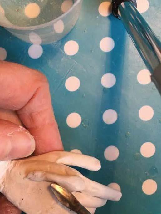 If you have very warm hands, the clay will dry out much quicker. I would advise the wipe your hands on a damp cloth while you are working, so your hands don’t become caked with clay.