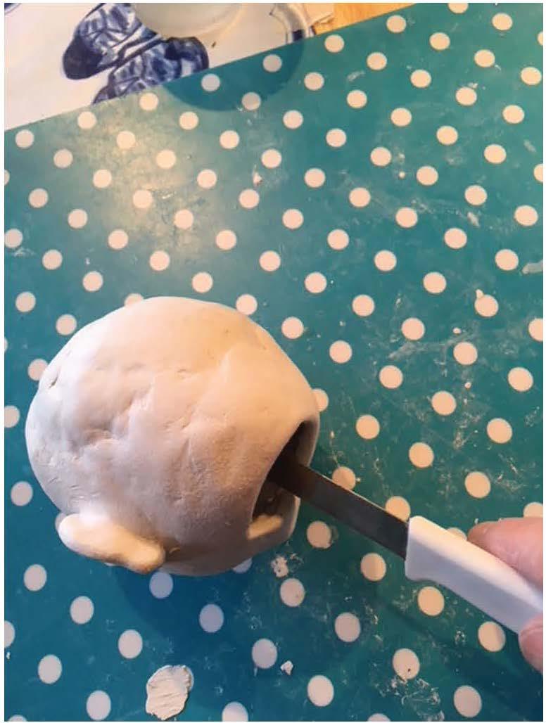- Experiment at the back of the puppet’s head, or any other part which will not be seen, or make a sample piece of clay, to experiment on.