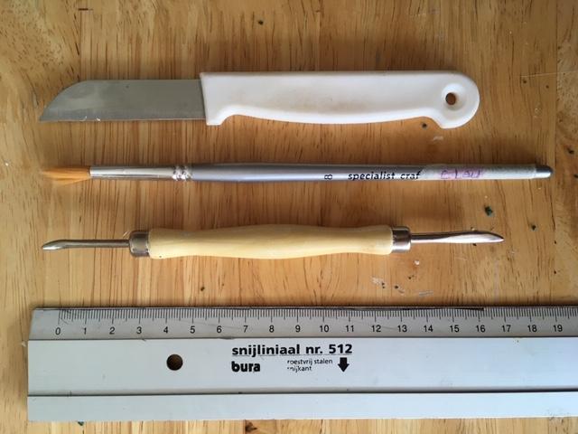 • A roller, rolling pin or bottle to roll out clay. (I use a rubber roller used for print making)