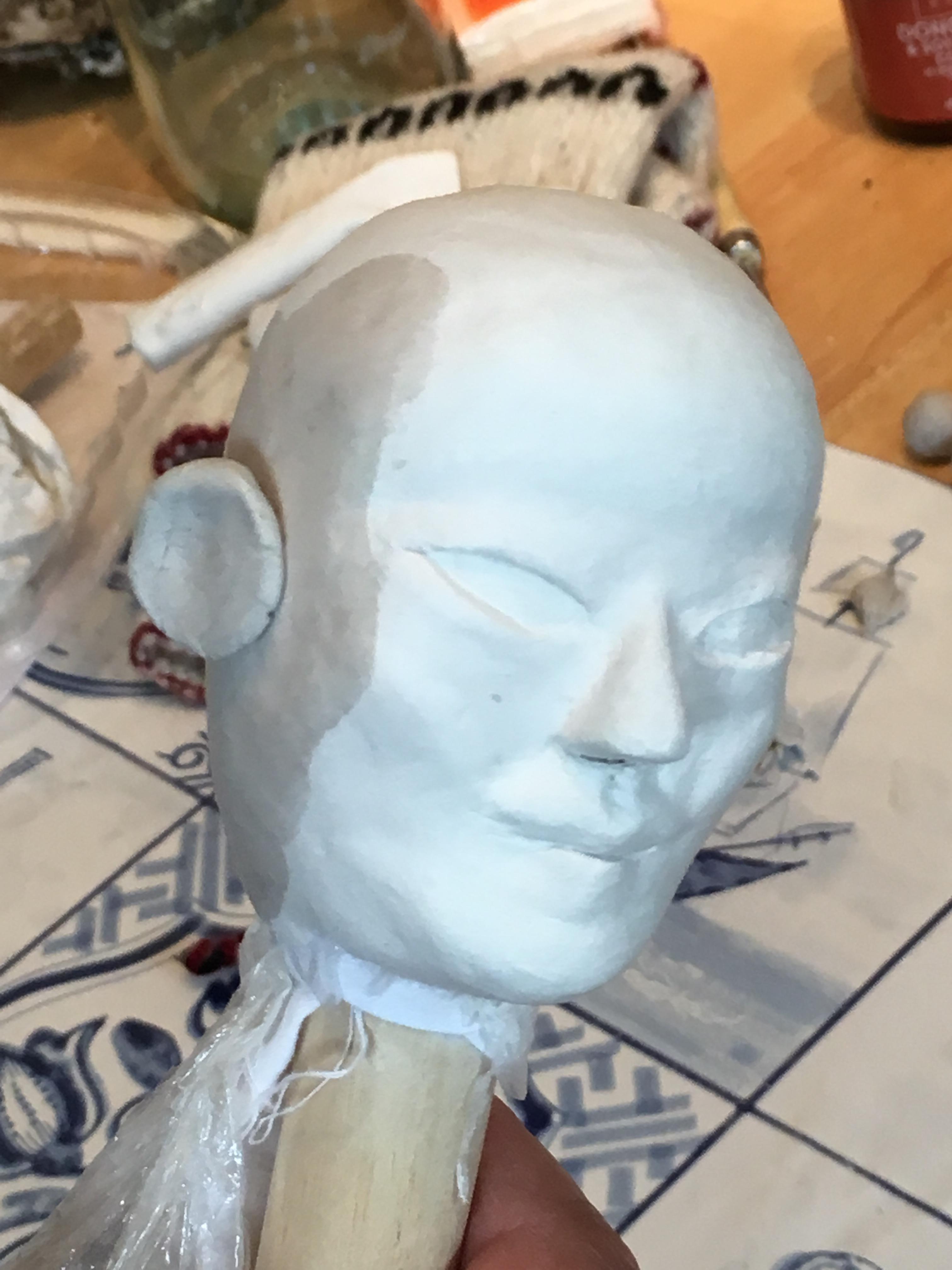 This part of the course is definitely the most exciting for the maker, and for me as a teacher. At each step in the making you can see a character evolve. And it is rarely what you imagine it would be. As I said before, the puppet decides who or what is it going to be. We of course have some control over how big a nose, what shape the chin, etc., but for some reason one’s thoughts translate through the clay into the head. I have seen students redo the shaping of the face many times, as they didn't like the emerging character. She gave up at trial number six… the puppet looked the same every time.