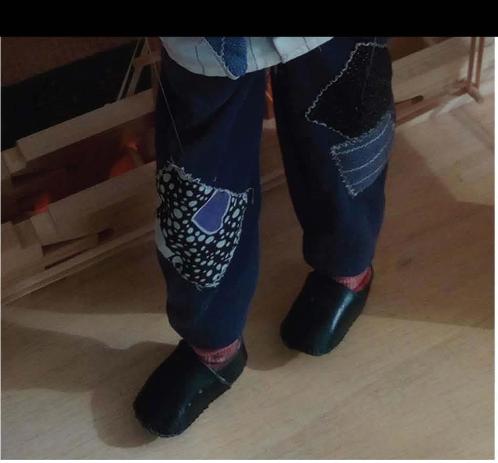 During the course I facitiated with the people with disabilities, one participant was going to make a young man on a skateboard. It turned into a monk wearing an orange robe. Another participant had a young woman in mind. She made an old lady, full of attitude, in designer clothes and a dog in her handbag. Stunning work. All telling a story. One young participant said that the many physical challenges he faced by working on the puppet dictated how it eventually turned out. (A biker wearing a leather jacket). All so true. Go with it.