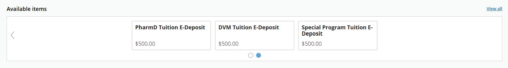 Scroll down to “Available Items” and select the deposit you wish to make, click the arrow button on the right hand side to view additional deposit.