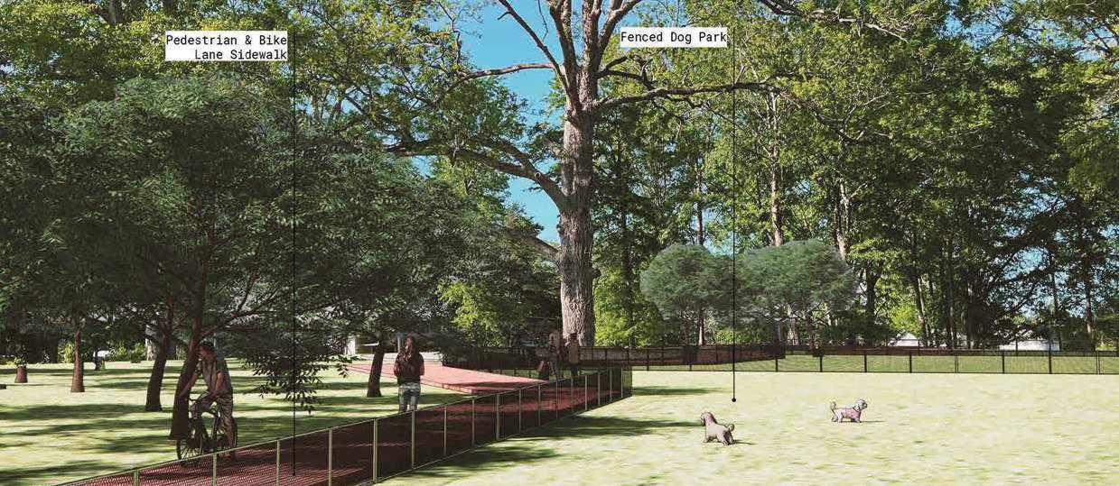 Bike & Pedestrian Sidewalk with String Lights along with the whole site.