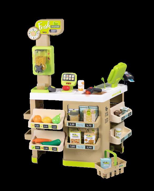 59Iegādājies preces arī tiešsaistē ww.toysplanet.lv 1. SMOBY rotaļu frizieru komplekts (3032163202431) 139,00 € 2. SMOBY rotaļlietu friziera instrumentu komplekts ar 10 piederumiem (3032163201526) 46,99 € 3. SMOBY iepirkšanās centra rotaļlietu komplekts (3032163502340) 129,00 € 4. SMOBY lielais rotaļu kases komplekts ar 30 piederumiem (3032163501145) 46,99 € 5. SMOBY rotaļlietu iepirkšanās centrs FRESH MARKET (3032163502333) 109,00 € 2. 1. 3. 4. 5. Komplektā iekļauti 19 piederumi: • skaistumkopšanas galds un krēsls; • spogulis; • plaukts lietām; • izlietne; • kases zona utt. Komplektā Ietilpst 42 ekstras: • iepirkšanās centrs ar skeneri; • grozs un svari; • karšu lasītājs; • augļi, dārzeņi un citi produkti. Komplektā ietilpst 43 piederumi: • elektrisks kases aparāts; • kalkulators ar displeju; • karšu lasītājs; • čeku printeris; • svari, grozs utt. Augstums – 91 cm Augstums – 89 cm Augstums – 90 cm