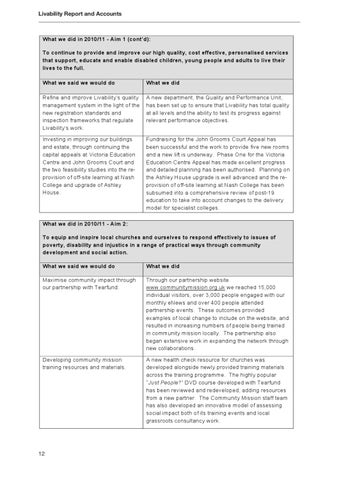 What we did in 2010/11 - Aim 1 (cont’d): To continue to provide and improve our high quality, cost effective, personalised services that support, educate and enable disabled children, young people and adults to live their lives to the full. What we said we would do