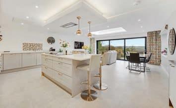 a large open room offering a snug and sitting room and a large dining room with a beautiful log burner set within a feature fireplace. There is also a truly spectacular living room offering panoramic views, a bespoke dining kitchen with top-end integrated Neff appliances and a fitted utility room.