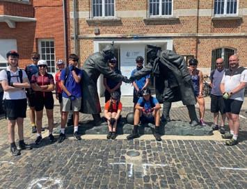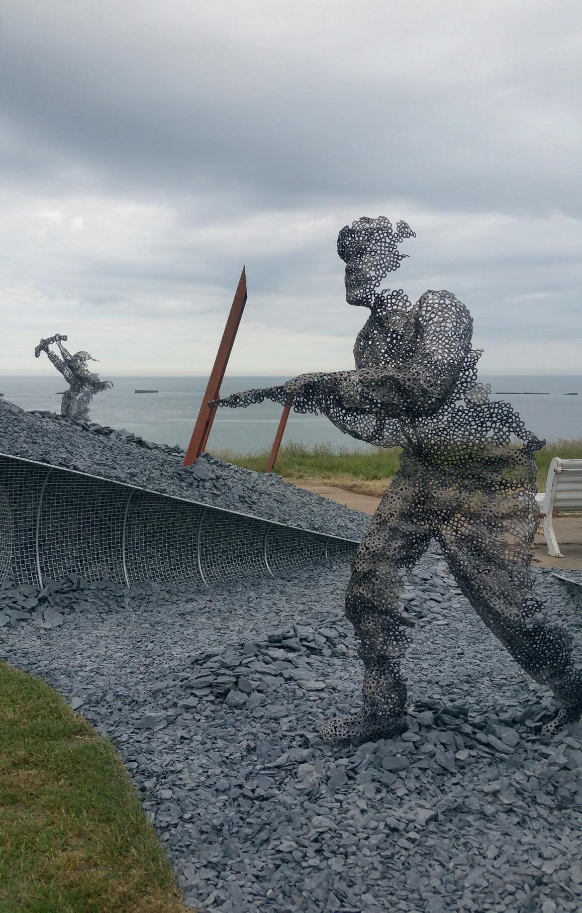 Four years later in 2019, he created D-Day Revisited – an award-winning installation created for Chelsea to commemorate the D-Day landings, which features a series of sculptures of soldiers made of stainless steel washers: “The washers give the sculptures a transparency – almost like a memory,” says John, who worked alongside acclaimed fellow UK sculptor Thompson Dagnall, who created a solid stone sculpture of a presentday D-Day veteran, looking at the ghostly sculptures of the young men staggering out of the water.