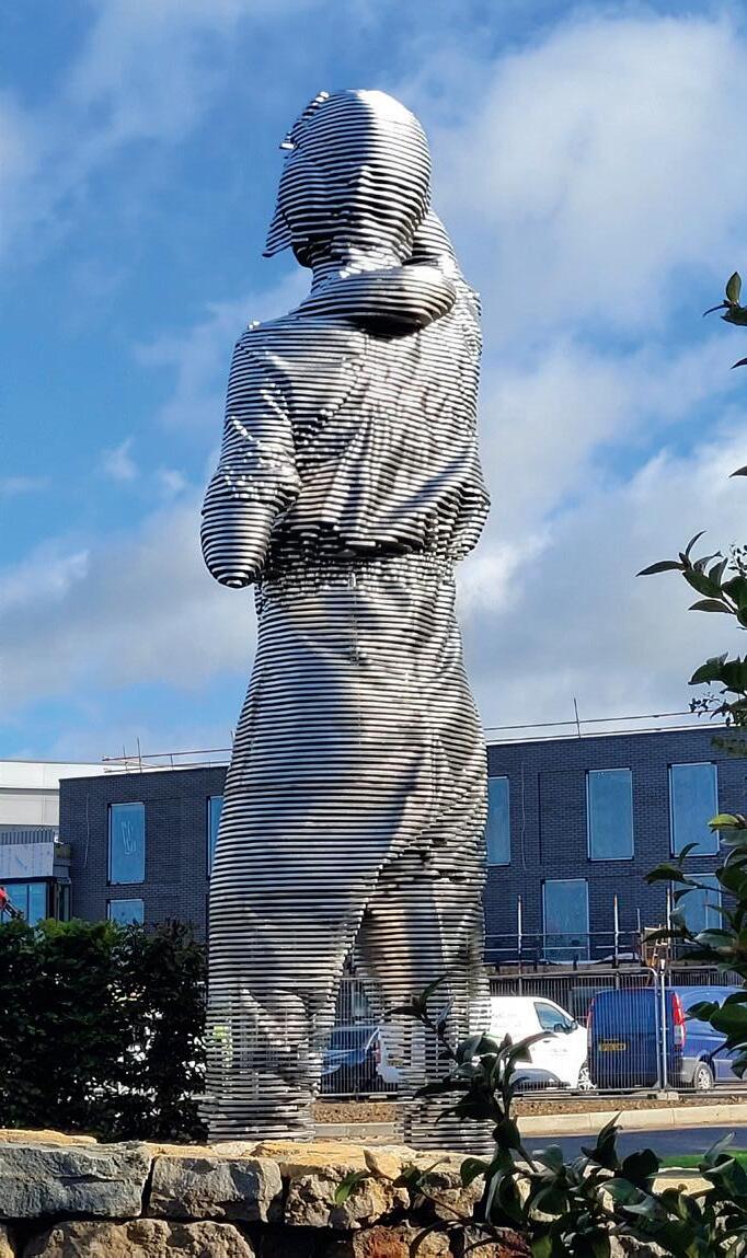 241 LAYERS OF LASER-CUT STAINLESS STEEL, THE BATTLE OF BRITAIN SCULPTURE SHOWS A YOUNG PILOT LOOKING UP TO THE SKIES