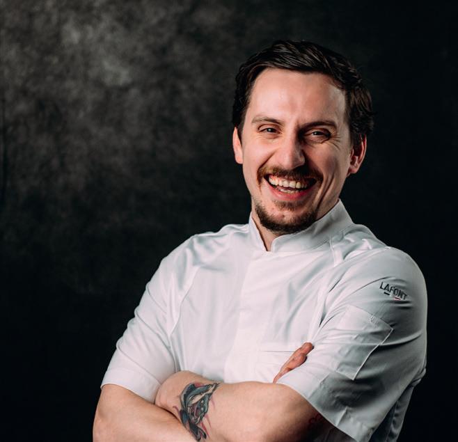 restaurant, where Head Chef Danny Young leads the kitchen. A rising star in British gastronomy and a finalist in the prestigious National Chef of the Year competition, Danny is known for his boundary-pushing approach and deep-rooted commitment to sustainability. He began his career as an apprentice at Northcote, where he rose through the ranks to become Head Chef, honing his skills in refined, seasonal cooking. His menus at 1887 and Bo & Muc brasserie showcase Scotland’s rich natural larder, with ingredients sourced from the estate’s kitchen garden and trusted Highland suppliers.