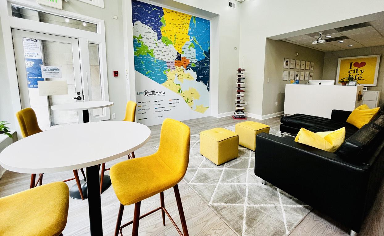 After two years away, Live Baltimore’s staff returned to a re-imagined Charles Street Home Center in spring of FY22. Our refreshed office features additional collaborative spaces, more natural light, and work stations better tailored to team members’ hybrid schedules. Our branded interior design (done in-house!) attracted attention from the Baltimore Business Journal, which featured the space in it’s “Cool Digs” series in March.