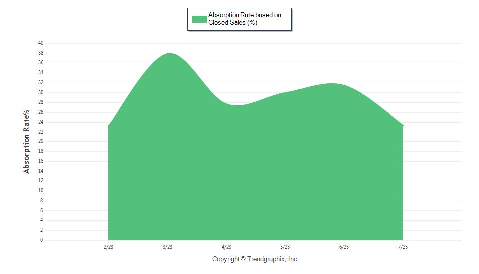 The July 2023 Absorption Rate based on Closed Sales of 23.4 was down 25.7% compared to last month.