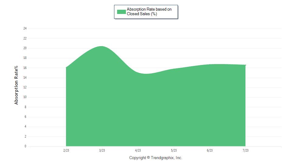 The July 2023 Absorption Rate based on Closed Sales of 13.6 was down 24.1% compared to last month.