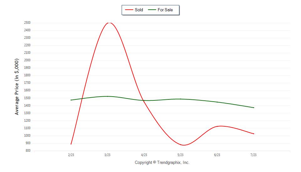 July 2023 was a Seller's market! The number of for sale listings . The number of sold listings . The number of under contract listings was 0. The Months of Inventory based on Closed Sales was 1.