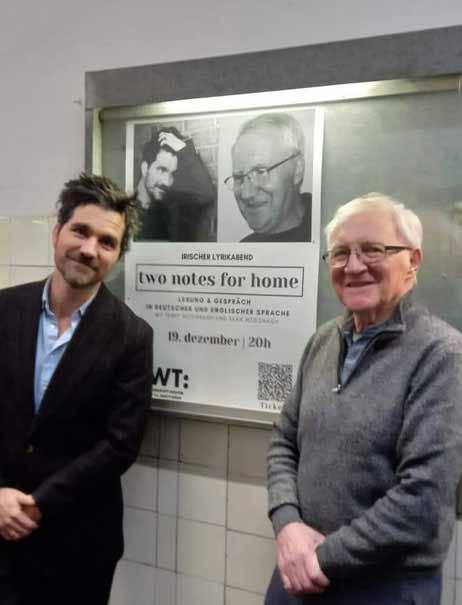 TWO NOTES FOR HOME. A Bilingual Evening of Poetry and Conversation with poet, Terry McDonagh and his son, actor Sean McDonagh in FWT theatre, Cologne. Sean is a well-known TV and theatre actor in Germany. He’s an Ensemble member of Schauspiel Koeln and is moving to the famous Burgtheater in Vienna in the next few months. ( Zentralbuero - Agentur fuer Schauspieler).