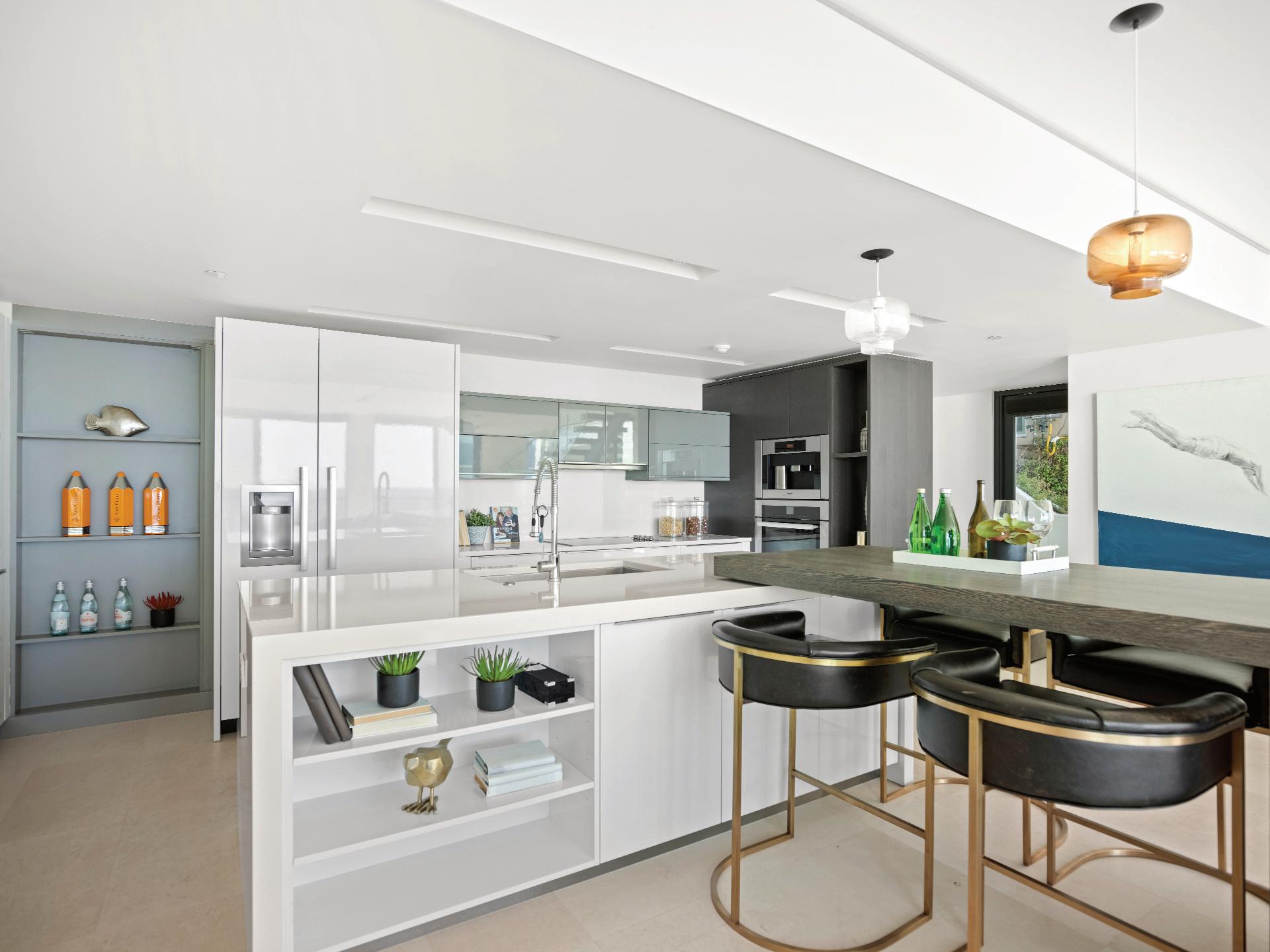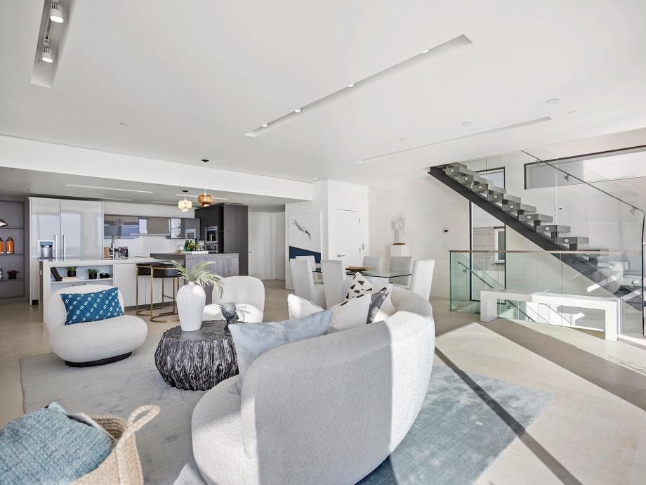 Approx. 2,143 s.f., the 2-bedroom , 3-bath m asterpiece separates bedroom s for m axim um privacy, with a top floor dedicated to a prim ary suite with extraordinary ocean views, a balcony, walk-in closet, and a 5-star bath with walk-in shower. On the lower level, another ocean-view balcony com plem ents a secondary bedroom or living/entertaining space with full bath