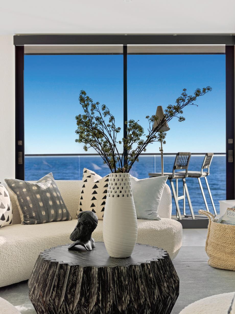 The contem porary residence incorporates top m aterials, including lim estone, weathered woods, steel and glass. The result?A stunningly im peccable design that is defined by its oceanfront setting with direct beach access.