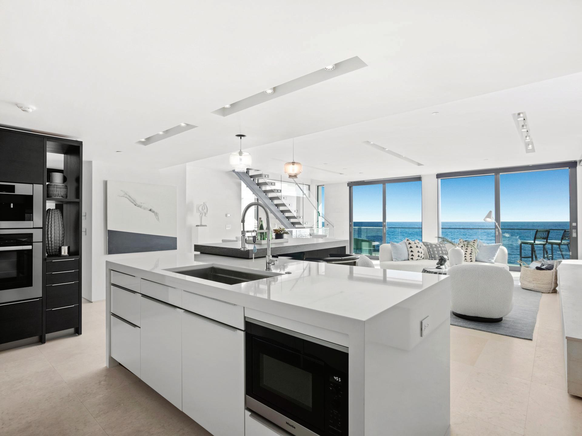 An elevator adds com fort and convenience on all levels. This unique oceanfront hom e provid ng a world-class space for sharing precious m om ents with friend s and fam ily.