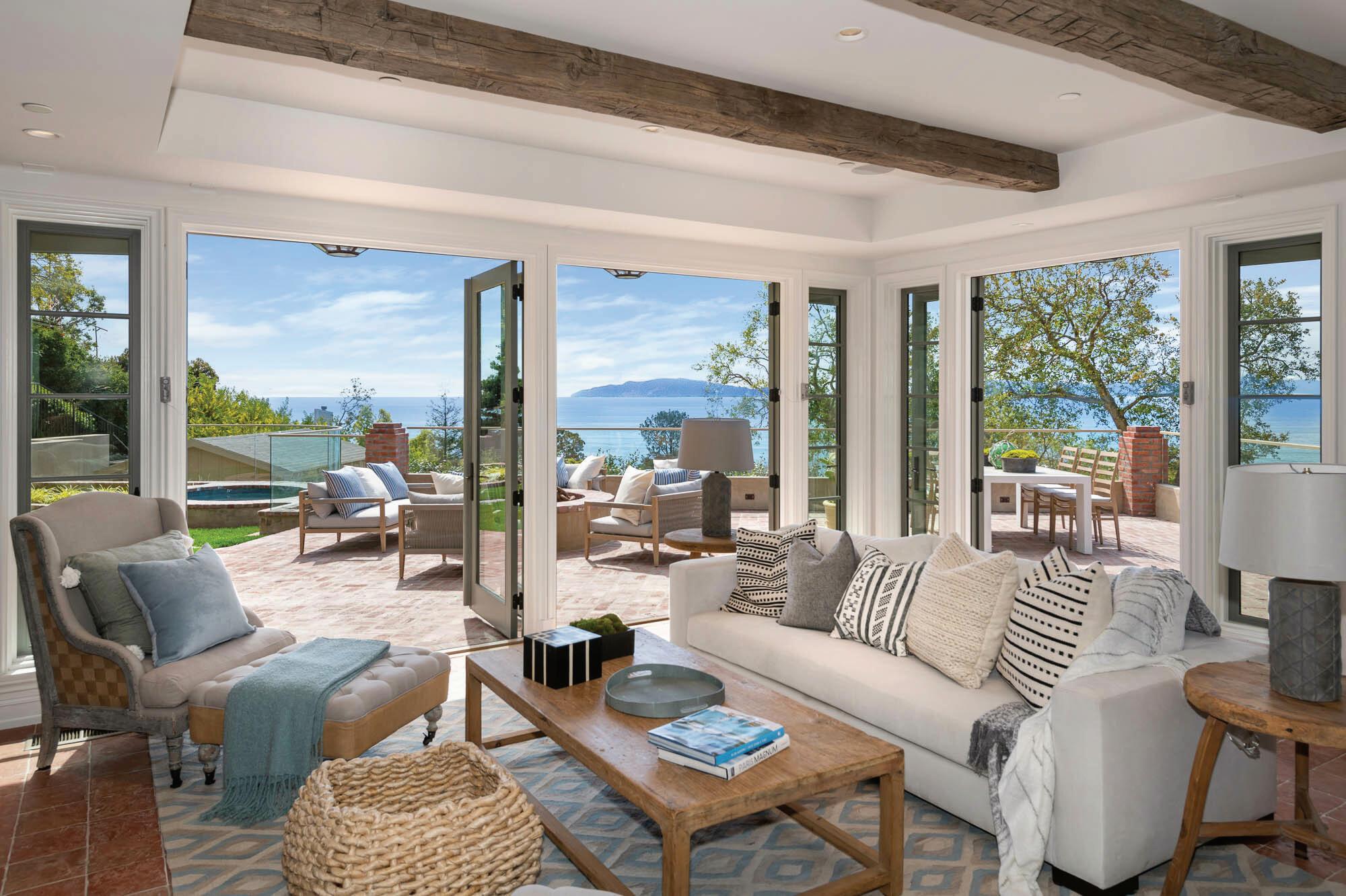 From its original stained glass windows, to its reclaim ed wood beam s,the residence is defined by tim eless elegance and m odern luxury, thanks to its m any cutting-edge sm art hom e features.Along with four en suite bedroom s,the m ain house features an office and a secondary living room ,all of which showcase serene ocean viewsA m assive gourm et kitchen features a gorgeous lim estone island, plus top-of-the-line appliances.