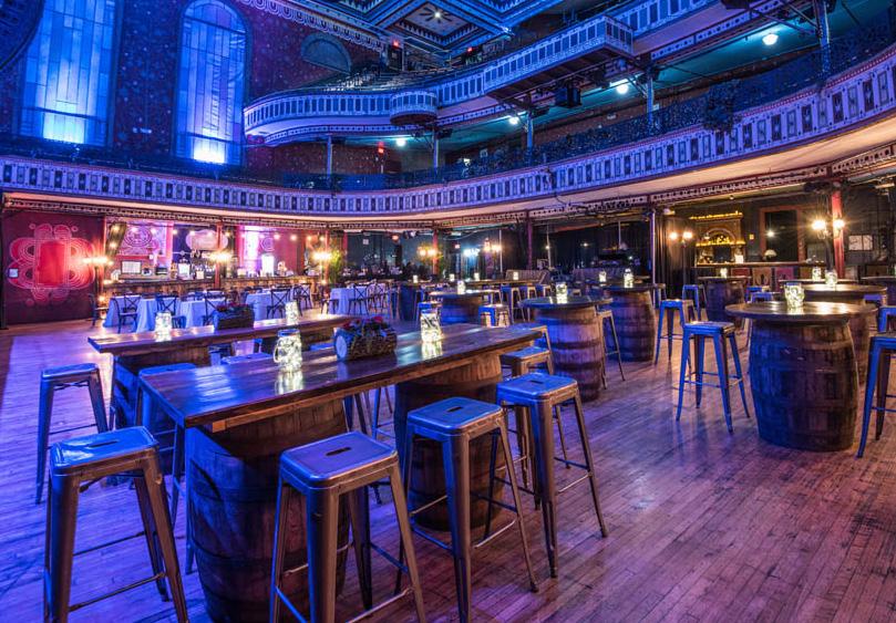 Renovated using the set that Conan O’Brien created taping his show during the Final Four in 2013, the 4,436 square-foot Cotton Club is often used in conjunction with the Music Hall. Featuring its own stage, two large bars, flexible furniture configurations and a customizable marquee to brand your event, this inviting space can host receptions up to 500 or a seated gathering for 250 guests.