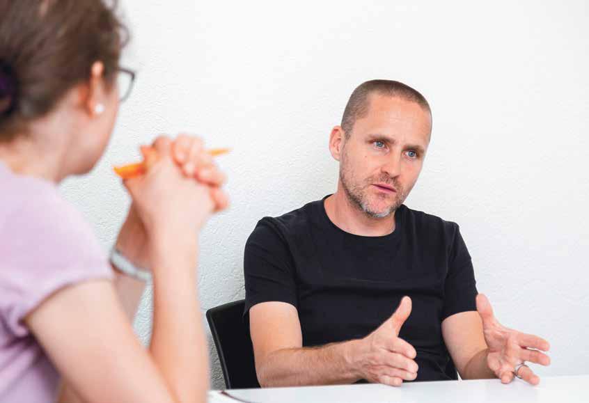 Verstehen statt verändern Regelmässigkeit, Orientierung und Ordnung sind für alle wichtig, damit der Alltag gelingen kann. Bei Bedarf werden wiederkehrende Abläufe besprochen und auf Merkzetteln festgehalten. «Darauf steht zum Beispiel, was nach dem Aufstehen gemacht werden muss oder welche Kleider sich an welcher Stelle im Schrank befinden», so der Pädagoge. Menschen aus dem AutismusSpektrum reagieren oft sehr heftig auf Lärm, Licht, Veränderung. Es kann sein, dass ein Jugendlicher nicht in die Turnhalle will, weil es ihm dort zu hell ist, zu laut und hektisch zugeht. «Er schaut dann durch die Glastür zu und macht später einen Spaziergang mit einem von uns», hält Mathias fest. Bei jedem Kind wird sorgfältig abgewogen, was schon möglich ist und wo es noch Geduld und schrittweise Annäherung braucht.