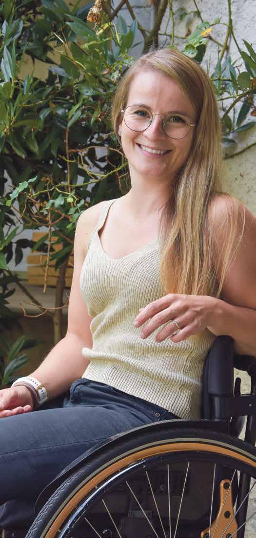 Mit dem Verein PlusSport setzt sich Romy an Schulen für Inklusion ein und sagt über ihr Engagement: «Ich möchte Menschen mit und ohne Beeinträchtigung ermutigen, etwas auszuprobieren, das im ersten Moment nicht machbar scheint. Gerade in unserer Vielseitigkeit können wir uns unterstützen, voneinander lernen und gemeinsam unter wegs sein.» Auch als Referentin in Unter nehmen schlägt Romy Brücken zwischen den Herausforderungen von Menschen mit Beeinträchtigung und denen der Angestell ten. Die junge Frau schöpft dabei aus ihrem reichen Erfahrungsschatz und steckt mit ihrer Zuversicht alle an.