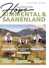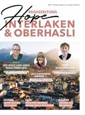 BUNTER ZEITUNGSSTRAUSS FÜR DIE REGIONEN Unser Konzept bewährt sich, 2022 gestalten wir gemeinsam mit Partnern insgesamt 35 «Hope Regiozeitungen» – verteilt auf die ganze Deutschschweiz. Im Berner Oberland erscheinen die Zeitungen wie schon vor einem Jahr in fünf Teilausgaben: Spiez, Simmental-Saanenland, un, Frutigland, InterlakenOberhasli.