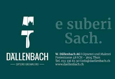 Werbung 071 333 15 90 SANIEREN RENOVIEREN UMBAUEN www.kundenmaurer.ch Gfeller Holzbau GmbH | Bollstrasse 63 | 3076 Worb | Tel. 031 839 55 61 | gfeller-holzbau.ch Holzbau | Zimmerarbeiten | Umbau | Holzsystembau | Fassaden | Terrassenböden | Innenausbau | Türen | Schreinerarbeiten | Parkett | Treppenbau