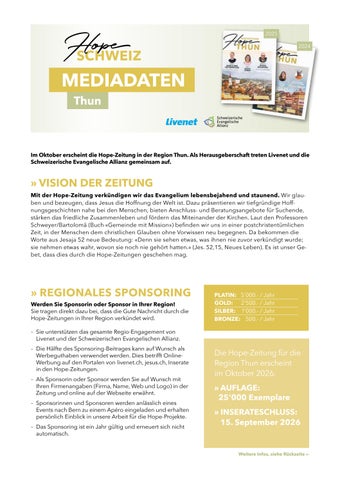 erscheint als Ergänzung zur Internet-Plattform www.jesus.ch und wird von Livenet herausgegeben. Livenet ist ein überkonfessioneller und politisch unabhängiger Verein. Er wird ideell von der Schweizerischen Evangelischen Allianz (SEA) mitgetragen.