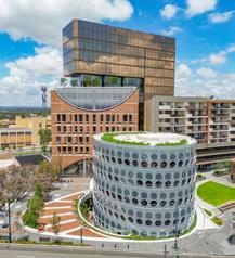 Landmark mixed-use civic, education and commercial hub, integrating Council chambers, library, university presence, and cultural space.