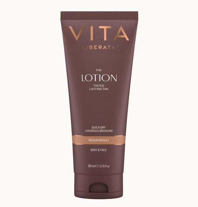 When I want something a little more noticeable — particularly for weekends or if I have an event — I switch to the tinted tanning lotion from Vita Liberata. I apply it using a tanning mitt, and it’s genuinely one of the easiest formulas I’ve used. The colour is a beautiful golden tone rather than anything orange, and it blends effortlessly across