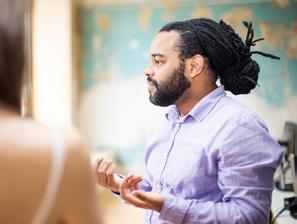 As a director, Joshua challenged me to communicate my notes differently. I had to emphasize tone of voice and inflection over facial expressions and body movements when guiding Joshua's performance. Rehearsals were also adjusted for accessibility. The script had to be screenreader accessible, and I mapped out when we would be rehearsing certain scenes ahead of time, allowing Joshua to be off-book for our table reads.