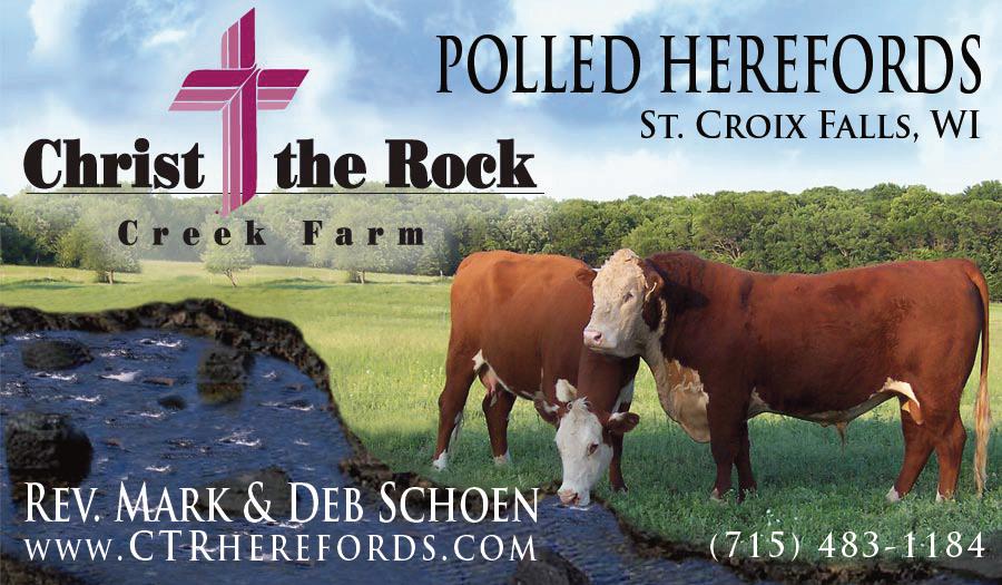 a Rev. Mark enjoys coming home at the end of the day and working with the cattle, and making decisions for them that will continually improve the Hereford breed. Mark works to prioritize in his Church and Visiting schedule, to balance both ministry and cattle, and appreciates the understanding that his congregation shows. Mark and Deb enjoy spending time outdoors with the cattle as God’s creatures. They greatly enjoy the Hereford Cattle breed! The Schoens’ focus on optimizing genetic quality of their herd to create Rock-solid seedstock that perform efficiently in the pasture to provide consumers with great tasting, well-marbled Hereford beef!