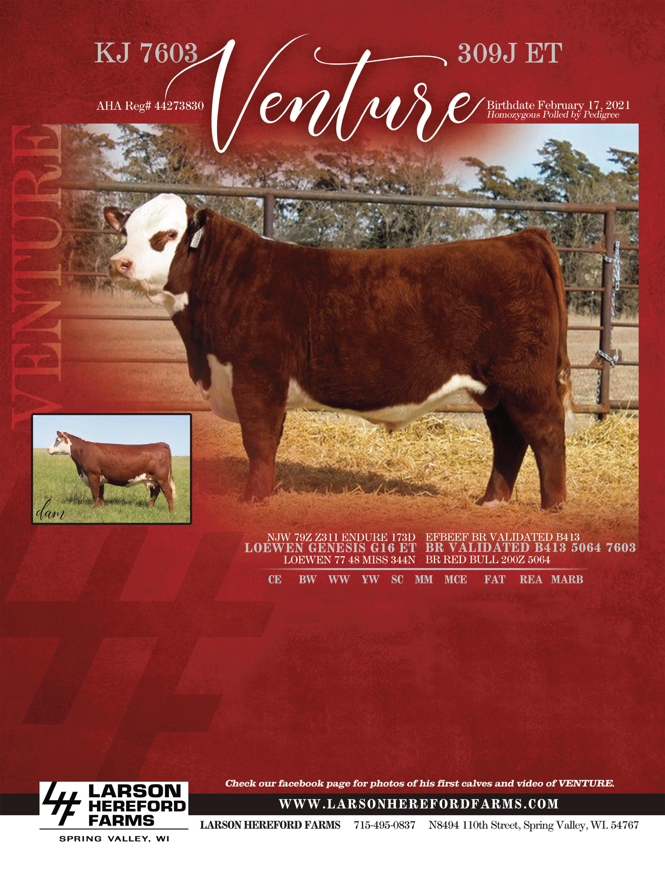a The farm’s first Herefords were purchased in 2002 from WHA Member Fred Larson, of Larson Hereford Farms, Spring Valley, WI.