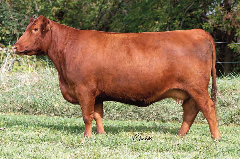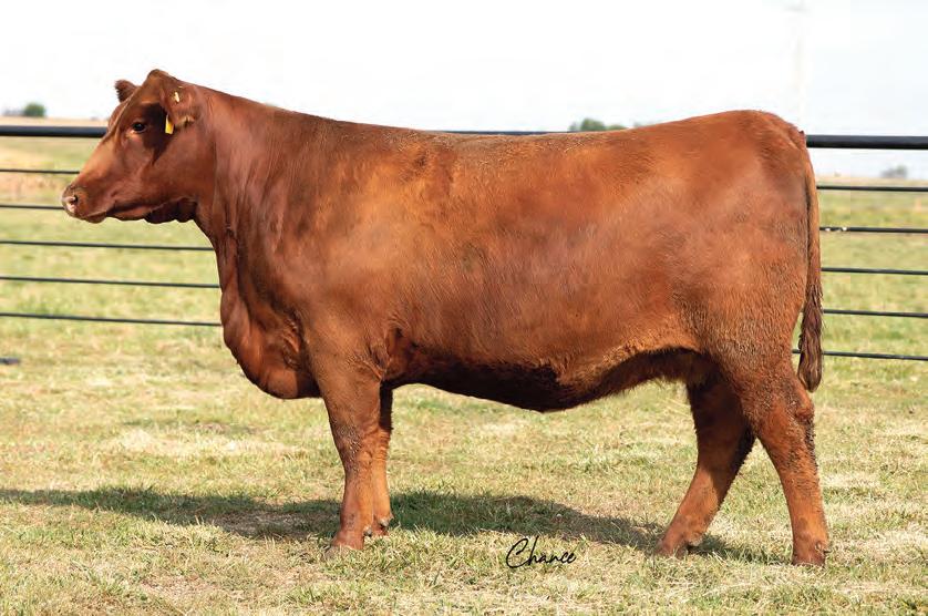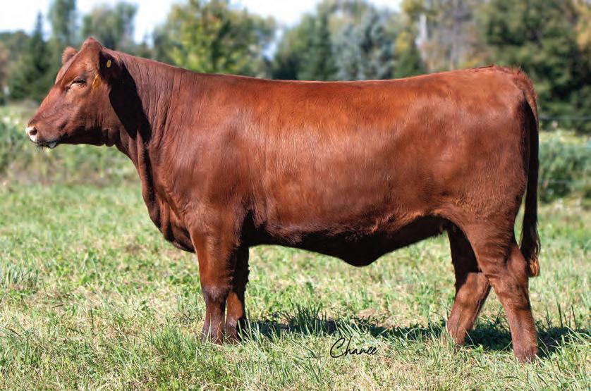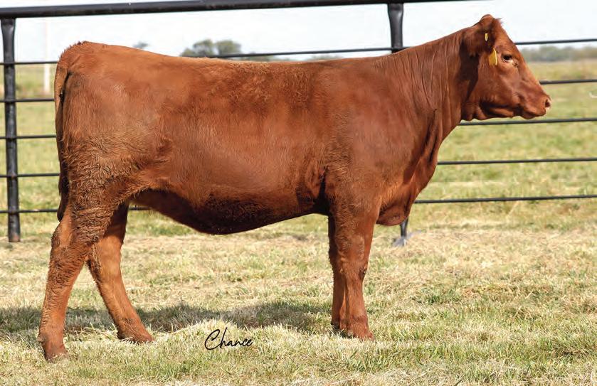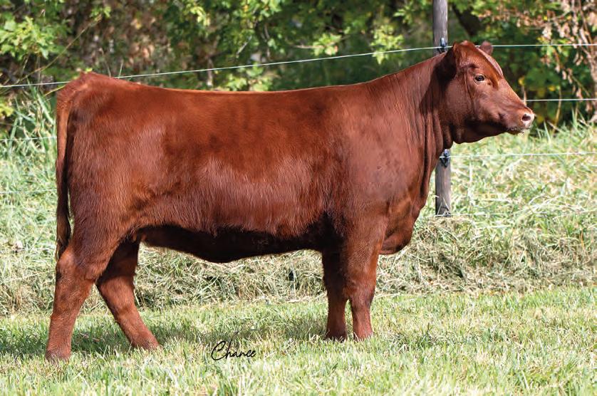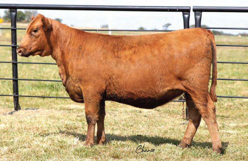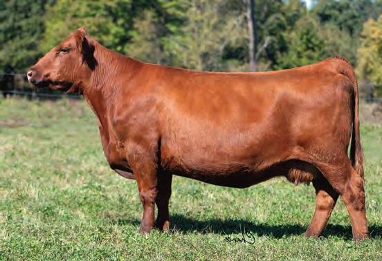 Here is a nice deep, smooth made heifer with a wellbalanced set of EPDs. She is a good structured heifer that is built to last and will mature into an amazing bred heifer. Her quiet disposition has made her a favorite of Addyson since she was a calf. We are going to sound like a broken record, but Draft Pick daughters have really made fabulous females for us.