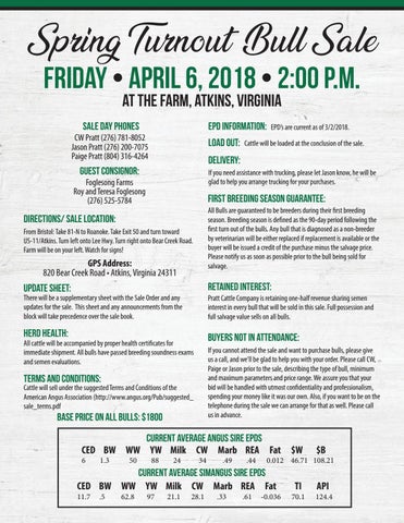 Friday • April 6, 2018 • 2:00 p.m. at the farm, Atkins, Virginia EPD Information:
