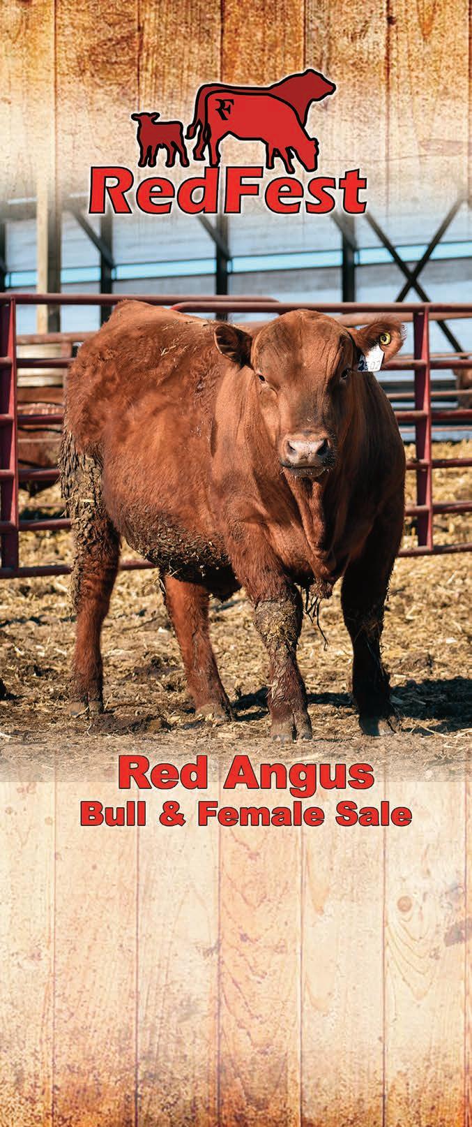 LIABILITIES: All persons who attend the sale do so at their own risk. The seller, auction facility, and RedFest assume no liability for any accidents that may occur. Neither does the seller, auction facility, or RedFest assume liability for the loss or injury to livestock due to theft, mysterious disappearance, sickness, improper handling or Act of God. It is to be clearly understood that RedFest and its representatives act only as a medium between the buyer and the seller. They are not responsible in any way for the failure on the part of the buyer and seller to live up to their obligations or for the truth of any warranties or representation, express or implied. Neither does RedFest assume any financial obligations to collect or enforce collection of monies between parties. Any legal action, that may in exceptional cases be taken, must be between the buyer and the seller. This catalog has been prepared by RedFest from pedigrees and information supplied by sources deemed reliable, however, RedFest will in no way guarantee the pedigree, percentages of the animals selling, or data included in this catalog. Any exceptions taken are between the buyer and the seller.