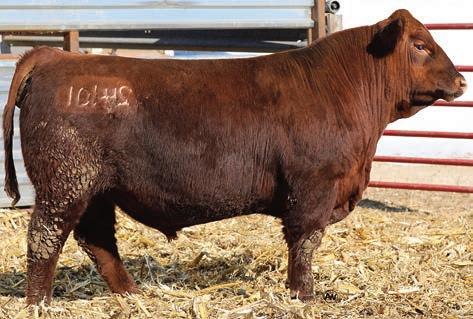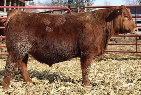 Another thick bodied ET bull, from a 10-year-old flush cow, “Sweet Sixteen”. The highest indexing bull from 4B Red Angus this year. Keep some heifers from this one!