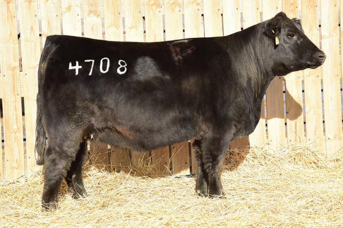 4708M is a moderate-framed female loaded with rib shape and volume, while being flexible on the move. This pedigree offers plenty of calving ease and comes from a highly maternal cow family. Her dam is a maternal sister to the dam of BABR OnRush 3000l ET and BABR 0400K ET. Her EPDs rank in the top 1% for CEM; top 3% for CEM; top 10% for BW and STAY; top 20% for PG30; and top 25% for MPI.