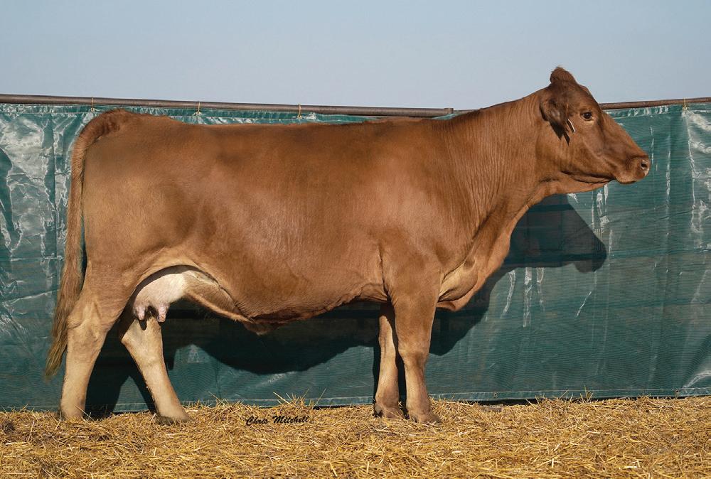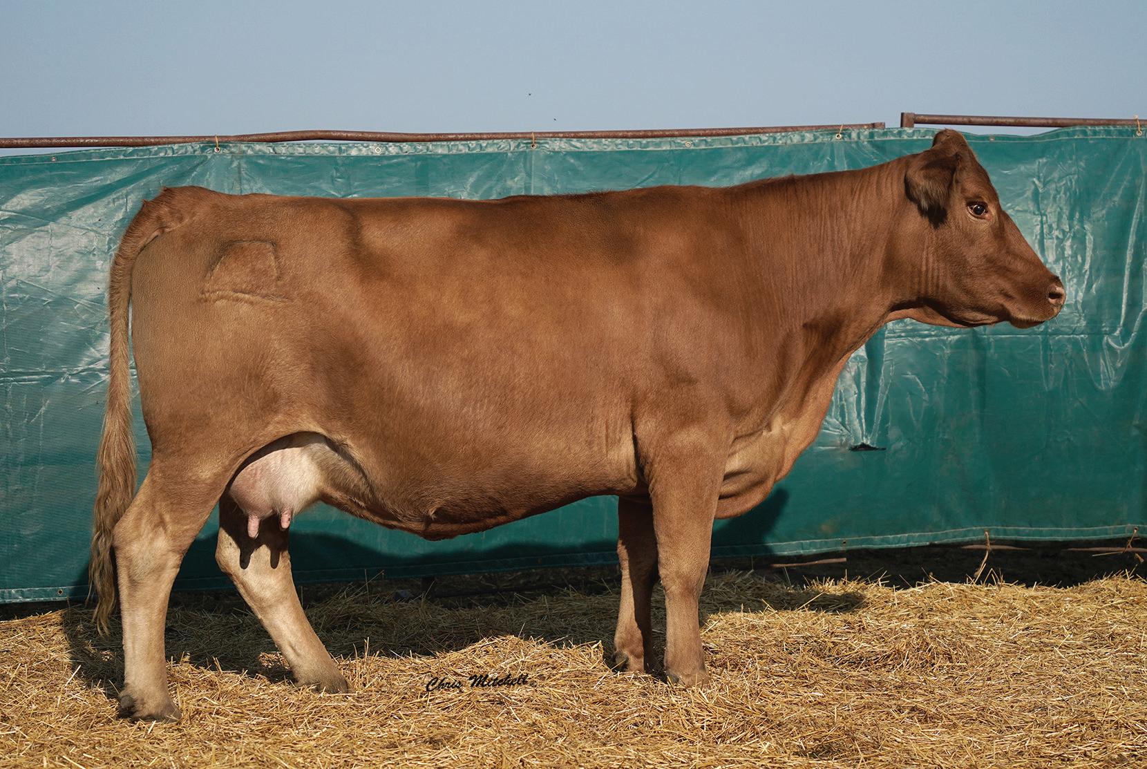 Due March 16, 2024 to DCH Hille H719 Hagar with a heifer calf. A typical Dollar daughter, long with lots of volume. Her dam and maternal great grand dam have both achieved dam of merit status. Ultrasound indicates a heifer calf sired by H719 Hagar. If you like length, you will like this heifer.