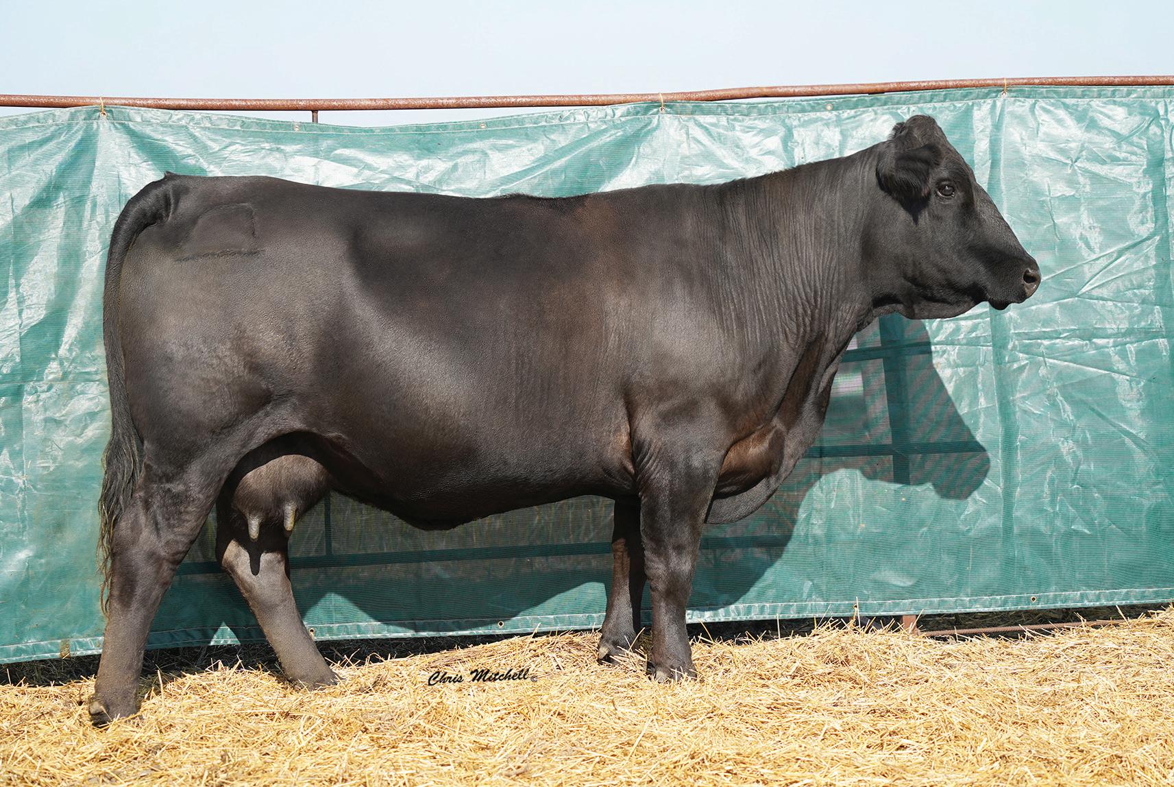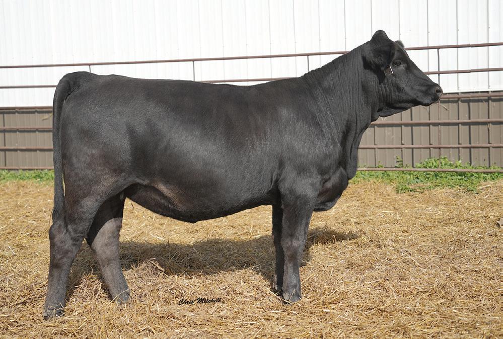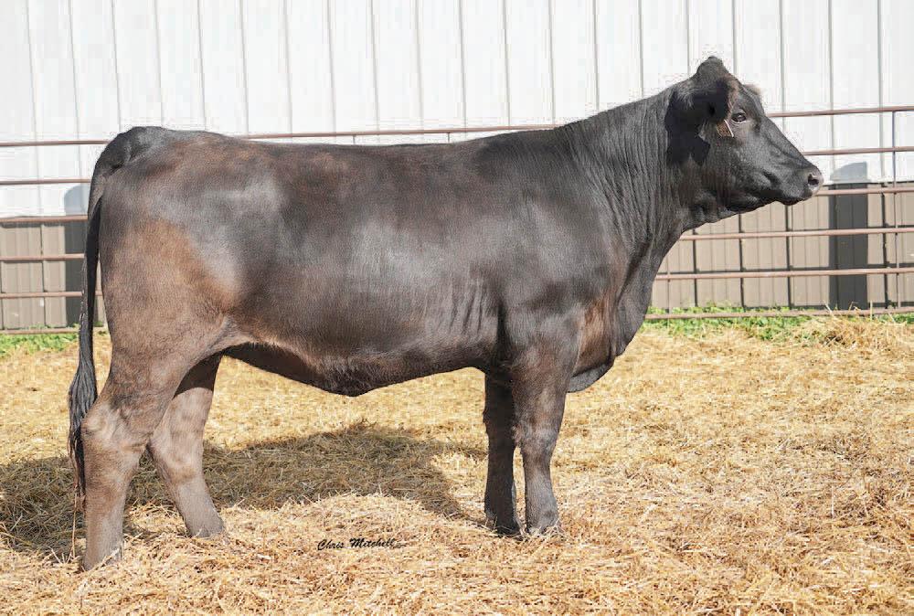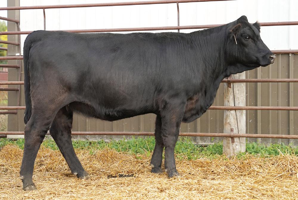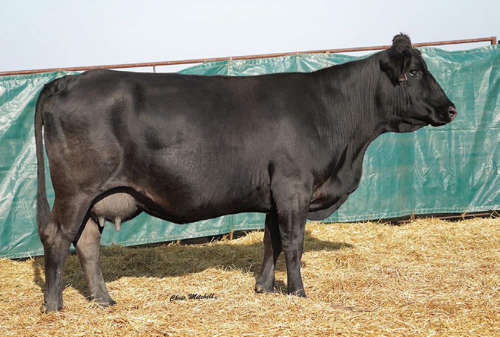 Choco and Eli influences combined to make a super smooth clean female. A dam of merit and dam of distinction in the maternal pedigree. Impressive EPD’s that indicate great performance and above average CE and BW allows for creative flexible breeding plans. Ultrasound indicates a black heifer calf from J198. This one is not to be overlooked.