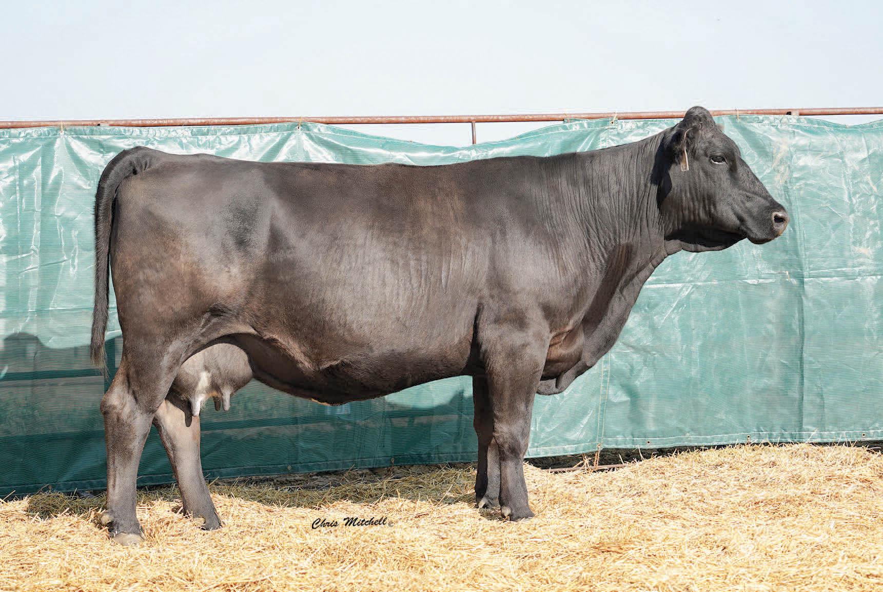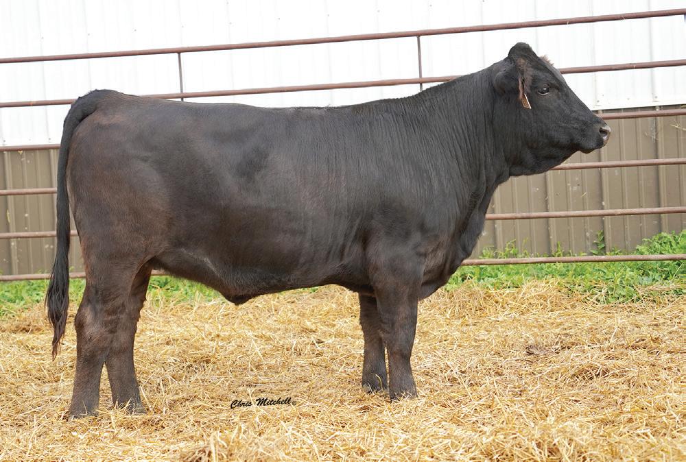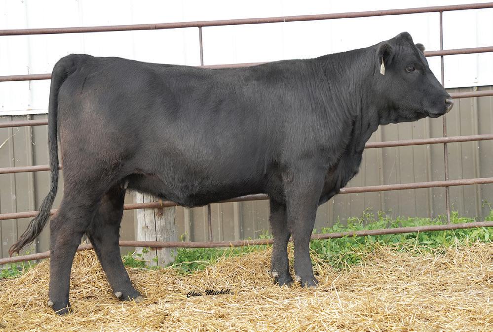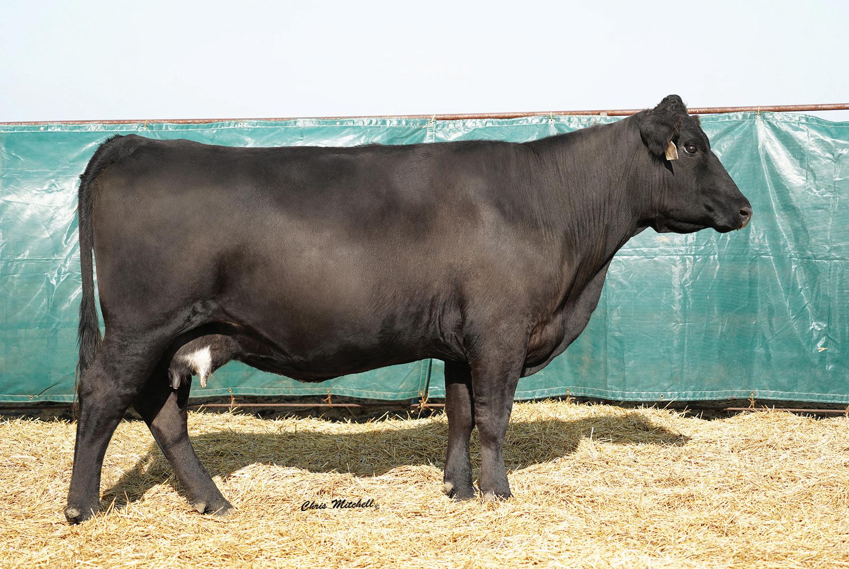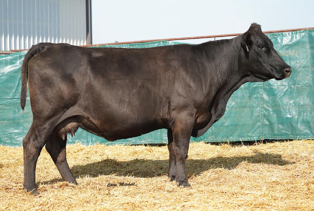 Choco and Eli influences combined to make a super smooth clean female. A dam of merit and dam of distinction in the maternal pedigree. Impressive EPD’s that indicate great performance and above average CE and BW allows for creative flexible breeding plans. Ultrasound indicates a black heifer calf from J198. This one is not to be overlooked.