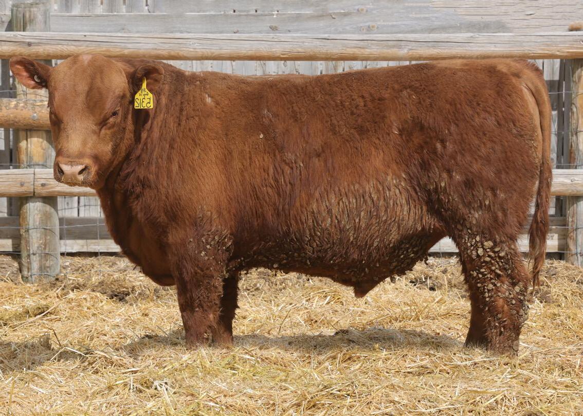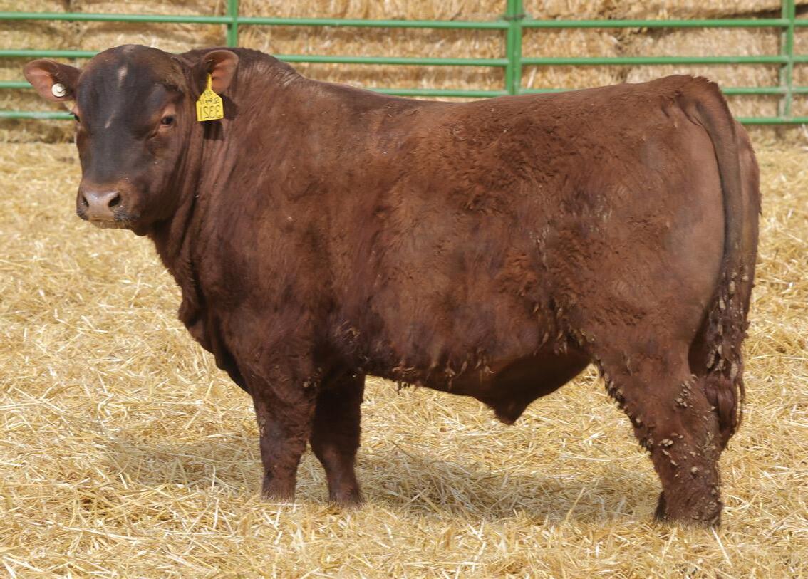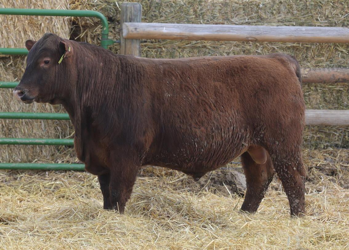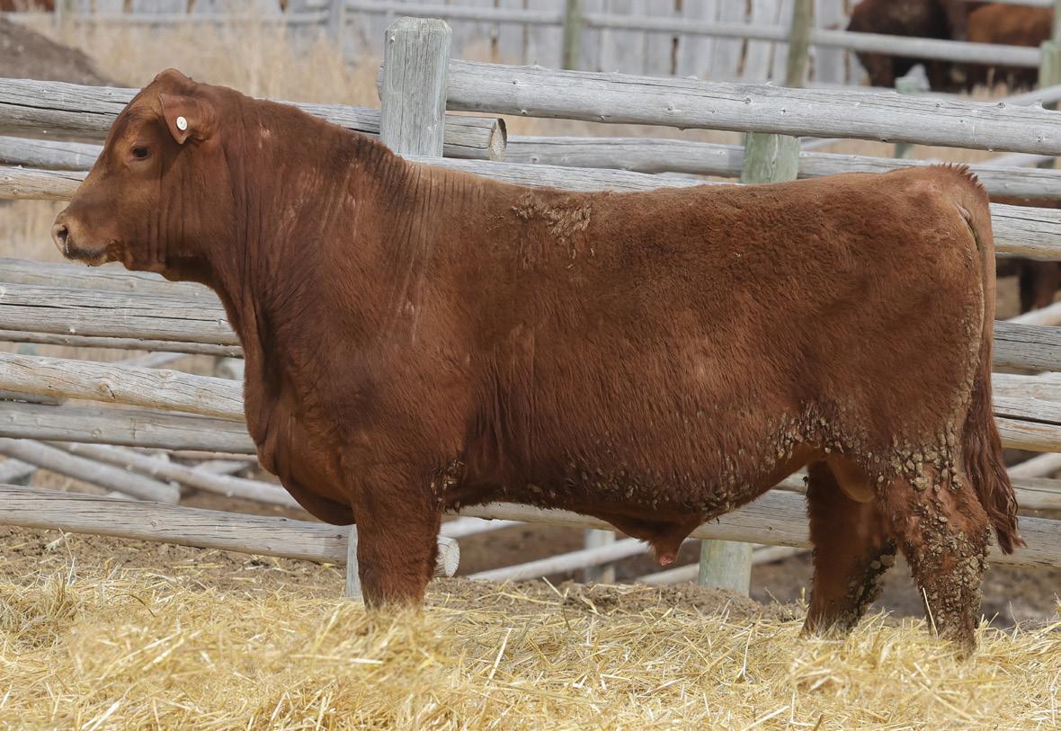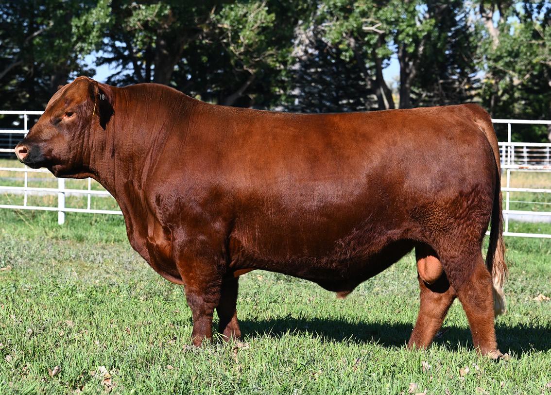 Lot 2’s sire, 5L Genuine 1603-195C sold in our 2016 sale as a promising yearling with a 156 IMF ratio. 8 years later he’s Red Angus’ grand ole man of PRIME. Of course, he’s gone and there is virtually zero semen available, so Genuine sons have been topping bull sales across the country for the last 12 months. But this sire line offers much more than just quality grade. Genuine’s 11-old-dam calved this spring, and one visitor described her teat size as something you’d brag about on your best 3-year-olds. Genuine also excels for fertility, also inherited from his dam who posts a track record of: 366-day calving interval and average progeny ratios of: 104 weaning, 113 yearling, 115 IMF and 105 REA. Lot 2 puts together an ideal growth curve and composition: 5% lighter at birth, 5% heavier at weaning, 6% heavier at yearling, 7% faster ADG and 18% greater IMF.